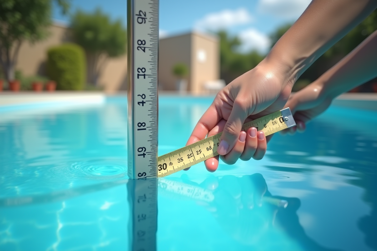 En complément, un mètre ruban peut être utilisé pour mesurer avec précision la hauteur d’eau. Plongez le mètre ruban dans l’eau jusqu’à atteindre le fond, puis relevez la mesure à la surface. Cette méthode est particulièrement utile pour les piscines à formes irrégulières où les repères visuels peuvent être moins fiables.